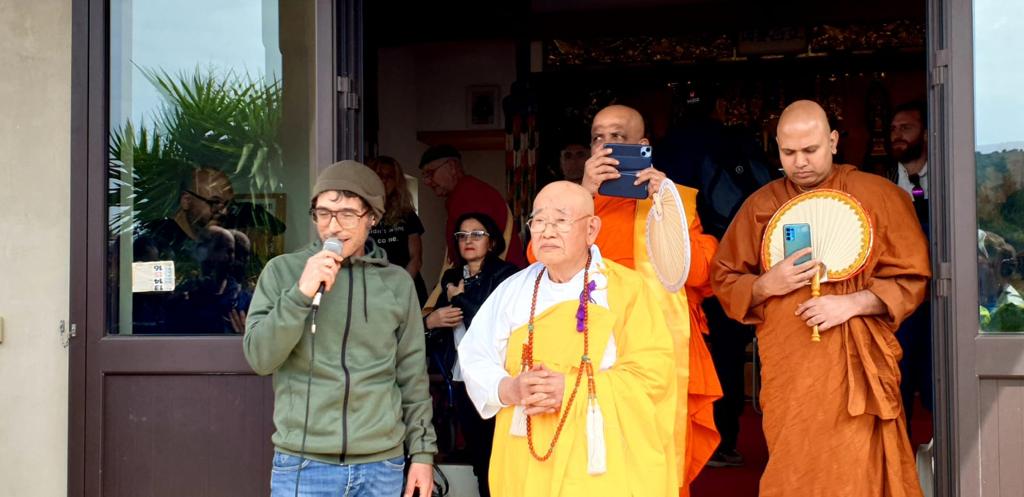 La Festa di Primavera alla Pagoda della Pace di Comiso. Il reverendo Gyosho Morishita ha presieduto il momento di preghiera nel giorno che ricorda la nascita del Buddha.