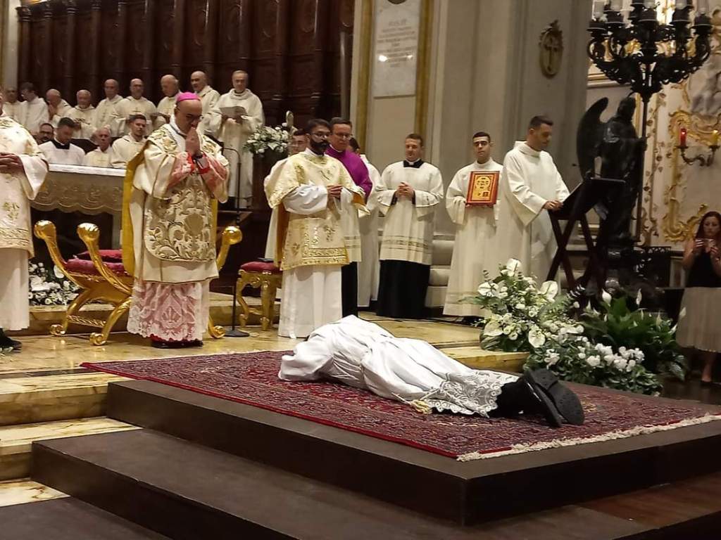 Don Sebastiano Scamporrino e don Mario Modica provengono dalla parrocchia di Maria SS. Annunziata di Comiso. Sebastiano è stato ordinato sacerdote al mattino, per l’imposizione delle mani dell’arcivescovo monsignor Luigi Renna (con lui anche l’emerito monsignor Salvatore Gristina e il vescovo di Nicosia Giuseppe Schillaci). Poche ore dopo, anche Mario Modica è stato ordinato sacerdote. Ed è la prima ordinazione sacerdotale del vescovo di Ragusa, monsignor Giuseppe La Placa, arrivato a Ragusa poco più di due anni fa. Monsignor La Placa si è commosso durante la celebrazione, in particolare nel momento dell’unzione delle mani, rito che avviene subito dopo l’ordinazione del nuovo presbitero.