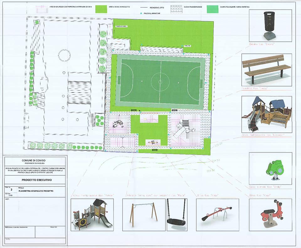 Per eseguire i lavori, la cui consegna è prevista prima del 25 aprile, festa della Liberazione, è stato necessario chiudere al pubblico l’area. L’apertura del cantiere avviene nel giorno in cui giunge da Palermo l’ufficializzazione del finanziamento al Comune di Comiso di due interventi nell’ambito della misura 9.6.6 del PO Fesr 2014-2020, per un ammontare complessivo pari a 1.200.000 (un milione e duecento mila) euro interamente a fondo perduto. Si tratta da un lato di un intervento di riqualificazione della Villa Comunale, con sistemazione dei viali, videosorveglianza, potenziamento del parco giochi, realizzazione di campi da bocce, trasformazione dell’ex ufficio di collocamento in complesso multifunzionale e realizzazione di un’area destinata a parco per gli animali. Dall’altro è stata finanziata la realizzazione di un’area polisportiva con tribuna e verde attrezzato alle spalle del centro diurno per minori di via Libertà, al cui interno è previsto un parco giochi inclusivo per bambini con difficoltà motorie e/o sensoriali.