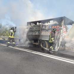 Incendio di un autocarro che trasportava bevande sulla SS. 514, al km2. L’episodio si è verificato intorno alle 8.40 di stamani: immediatamente è intervenuta la squadra operativa dei vigili del fuco.