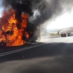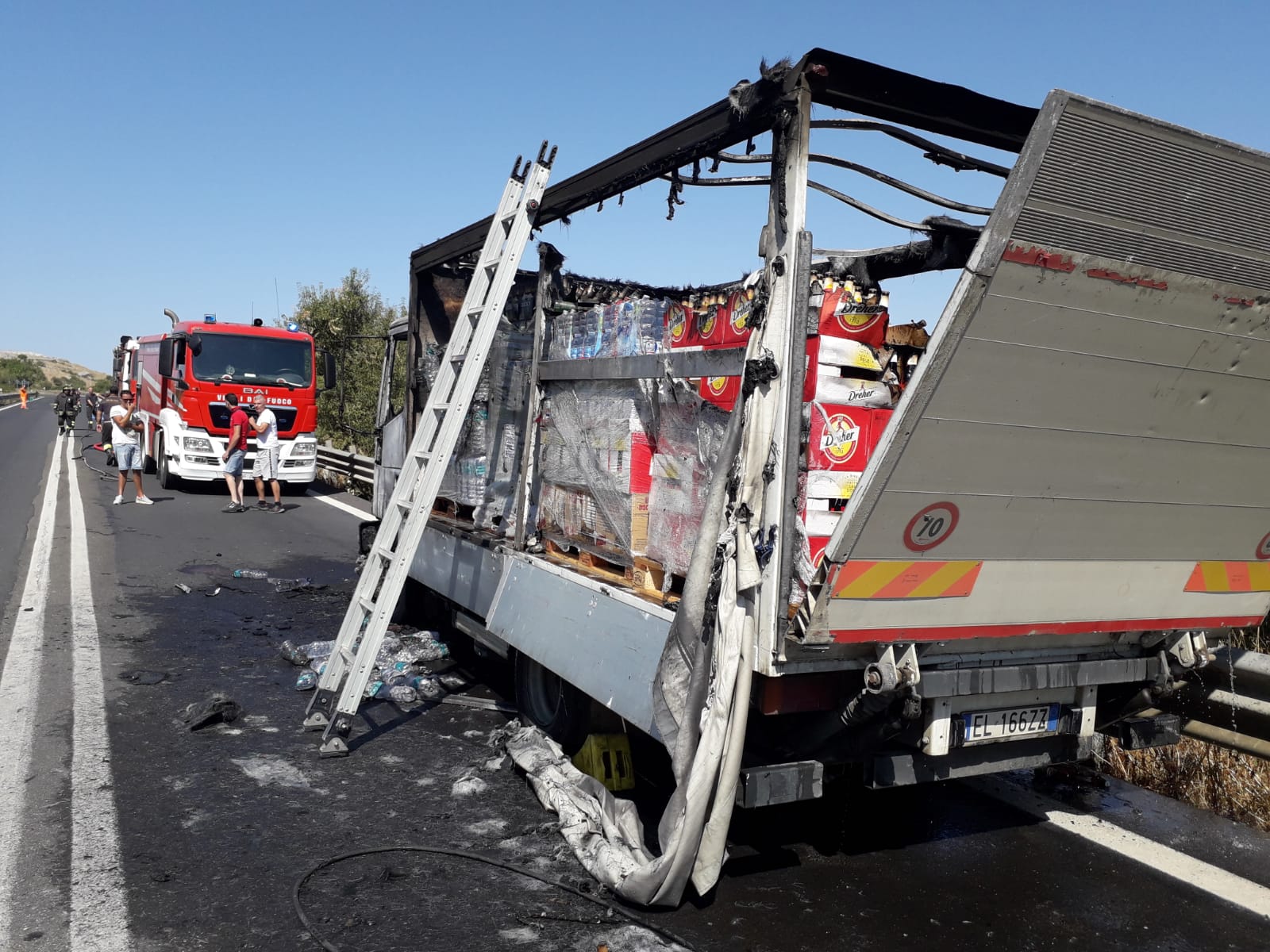 A fuoco un autocarro che trasportava bevande sulla SS. 514. Illeso il conducente. FOTO