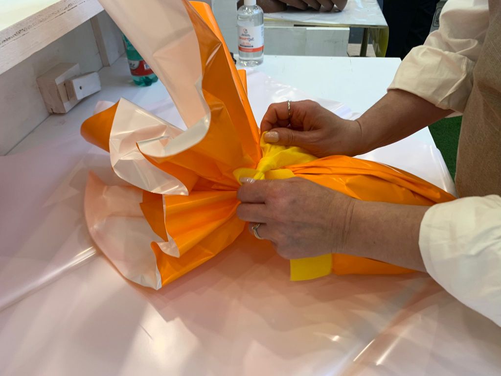 A rendere ancora più coinvolgente l’evento è la lavorazione dal vivo del cioccolato. Il maestro cioccolatiere, davanti agli occhi dei presenti, chiude e rifinisce ogni uovo, trasformando il gesto del regalo in un vero e proprio spettacolo.