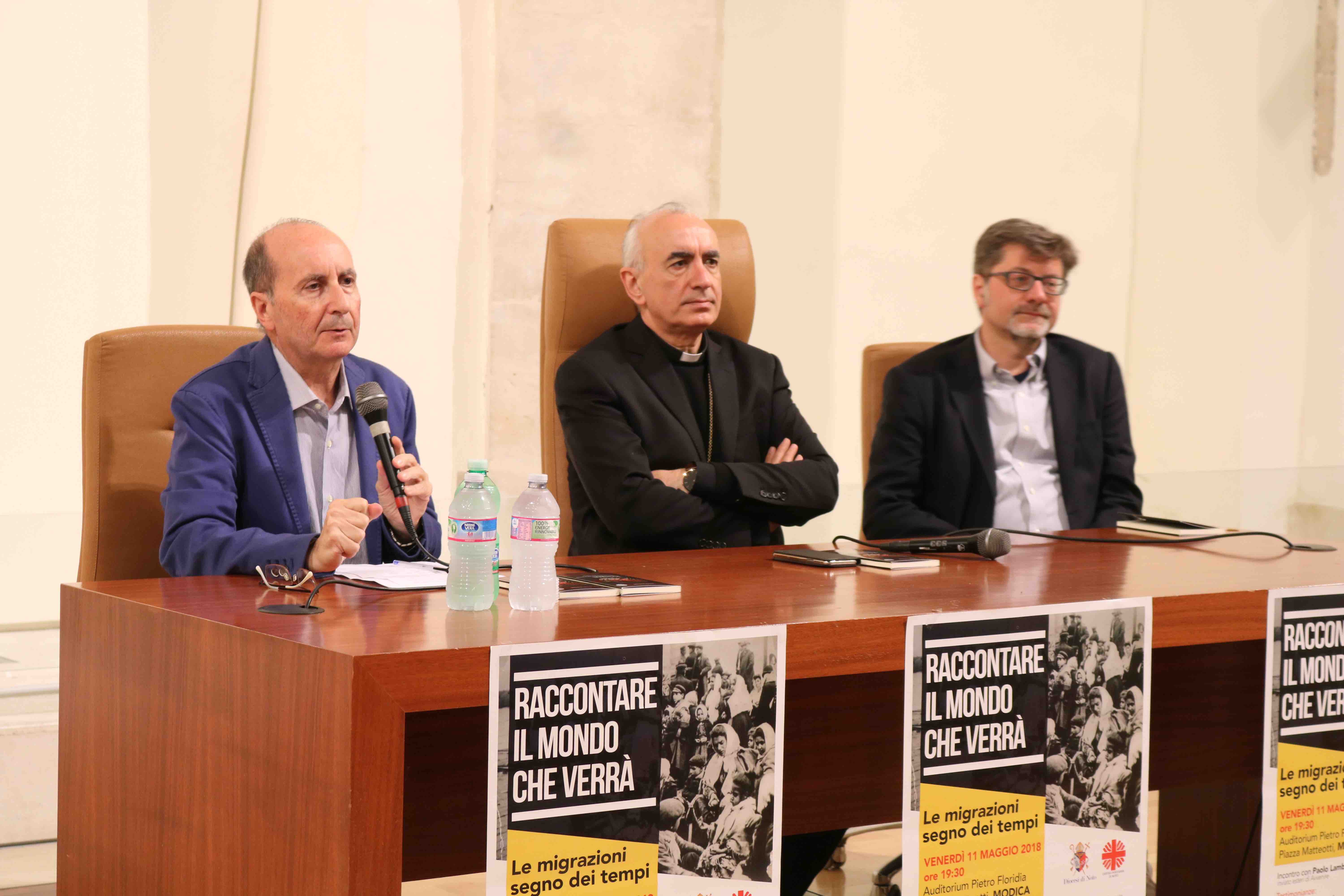 “*Questa è un’assemblea particolare che impegna questa città affinchè diventi veramente fraterna, dal latino fraternitas nel senso di istituire un legame, un’amicizia, un affetto*”. Così il presidente della Fondazione di Comunità val di Noto, Maurilio Assenza, che è anche direttore della Caritas diocesana di Noto, ieri sera ha aperto l’incontro all’auditorium Pietro Floridia di Modica sul tema ‘Migranti: raccontare il mondo che verrà’. Ad intervenire il caporedattore esteri di Avvenire Paolo Lambruschi, il vescovo della diocesi di Noto mons. Antonio Staglianò, ed ancora le testimonianze di Suor Adriana Marsili (della comunità missionaria intercongregazionale, che ha operato in Sierra Leone), Concetta Petriliggieri (missionaria modicana in Congo), il direttore di Migrantes, don Paolo Catinello e la testimonianza di Latif.