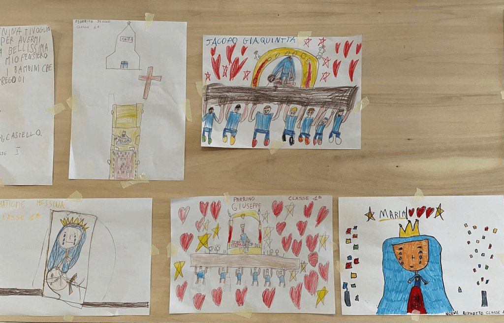 Gli elaborati sono esposti per tutto il periodo della festa nella chiesa madre, trasformando lo spazio sacro in una piccola galleria di emozioni e creatività. Un’iniziativa resa possibile grazie all’impegno dei maestri, che anche quest’anno hanno accompagnato i bambini in questo percorso educativo e spirituale.