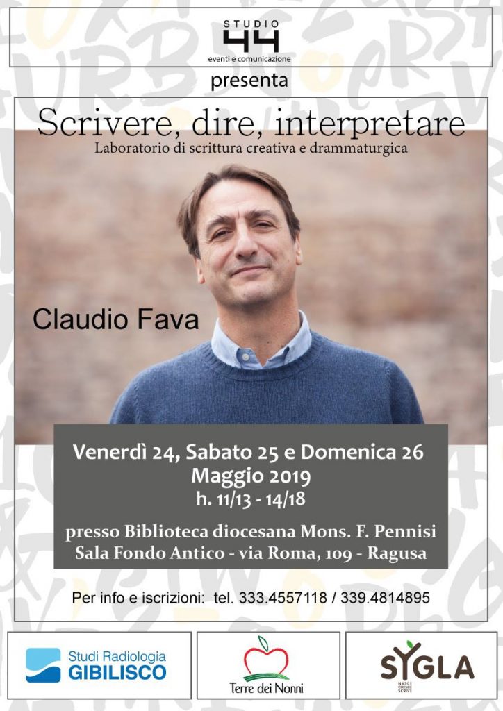 “Scrivere, dire, interpretare”, il laboratorio di scrittura creativa e drammaturgica di Claudio Fava arriva a Ragusa grazie all’organizzazione di Studio 44. L’agenzia di organizzazione eventi di Anna Balistrieri, dopo le masterclass di comunicazione del 2018, continua a promuovere appuntamenti formativo-culturali stimolanti e di sicuro interesse. Il laboratorio di scrittura di e con Claudio Fava è previsto dal 24 al 26 maggio presso la Sala Fondo Antico della Biblioteca Diocesana Mons. F. Pennisi di via Roma 109. Una tre giorni intensiva dedicata alla scrittura creativa e drammaturgica. Il laboratorio avrà una durata complessiva di 18 ore (dalle 11 alle 13 e dalle 14 alle 18). Claudio Fava, giornalista, scrittore prolifico e sceneggiatore per il teatro, il cinema e la televisione (David di Donatello e Nastro d’argento nel 2001 per la sceneggiatura de “I cento passi”) condurrà la “classe ragusana”, composta da un numero massimo di 20 corsisti, in un percorso teorico e pratico sullo scrivere e del mettere in scena gli elaborati concepiti. Al termine del laboratorio verrà rilasciato un attestato di partecipazione.