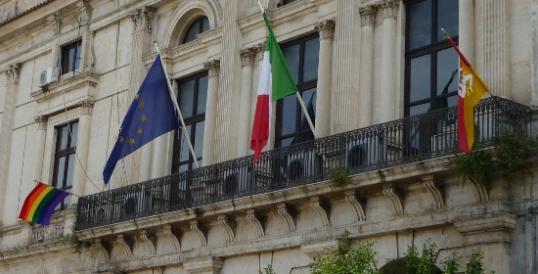A Ragusa la giornata mondiale contro l’omofobia con la bandiera arcobaleno sul Comune