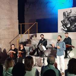 Un’atmosfera intima ha abbracciato il pubblico presente ieri sera a cava Gonfalone per la seconda serata del festival Barocco in tutti i sensi. “Bach, father and sons”, il tema della serata, declinato dal Valletta Baroque Ensemble, il ViBE, in formazione quartetto ad accompagnare il pubblico in un tempo morbido e confortevole. Le ‘incursioni’profonde de ‘I sonnambuli’ prima, ma anche di Isabella Candeloro e Marco Brugaletta – organizzatori del festival – hanno fornito spunti di riflessione sul senso del tempo e della famiglia, sull’amore incondizionato di un padre per i suoi figli, sul calore di un desiderio da realizzare per dare il senso compiuto ad una perdita inaccettabile. E poi l’ospite a sorpresa, Gabriele Dovis, la sua paura di morire a 40 anni e 140 chili, il suo percorso di crescita personale e il cambiamento che lo ha portato a correre come testimonial la maratona alle Olimpiadi di Parigi e a promuovere un progetto di inclusione