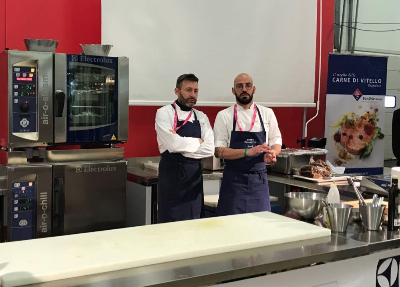 Durante la giornata del “VEAL DAY”, uno show cooking ha visto gli chef Peppe Cannistrà e Fabrizio Albini testimonial del “tender beff”.