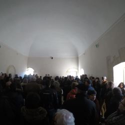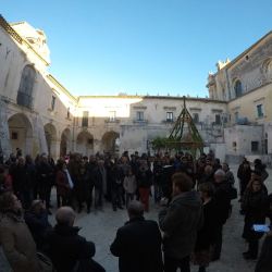 Presentata per la prima volta in occasione di Art Verona 2016, l’opera, dal titolo “La festa degli sguardi”, si staglia verso l’alto come una solida architettura per divenire simbolo di collettività, un omaggio alla città di Scicli affinché possa immaginare un futuro possibile. Ad aggiungere bellezza e suggestione il contesto: il Convento del Carmine, che proprio in occasione dell’inaugurazione di oggi pomeriggio è stato aperto per la prima volta al pubblico dopo i lunghi lavori di ristrutturazione e reso eccezionalmente fruibile per una partecipata e molto interessante visita guidata in compagnia del critico d’arte Paolo Nifosì che ne ha svelato la storia e i dettagli architettonici. La prima giornata di Rubino prosegue con il talk “Coltivare/Cultura”, organizzato da Bassi Comunicanti, con la partecipazione di tanti ospiti, tra cui l’Assessore alla Cultura Caterina Riccotti, Lorenzo Floresta di Giosf Italy e numerosi rappresentanti di associazioni culturali per un dibattito approfondito. Al via anche le prime degustazioni guidate in collaborazione con AIS Sicilia a Palazzo Busacca, aperte dai “padroni di casa” Armosa e Primaterra.