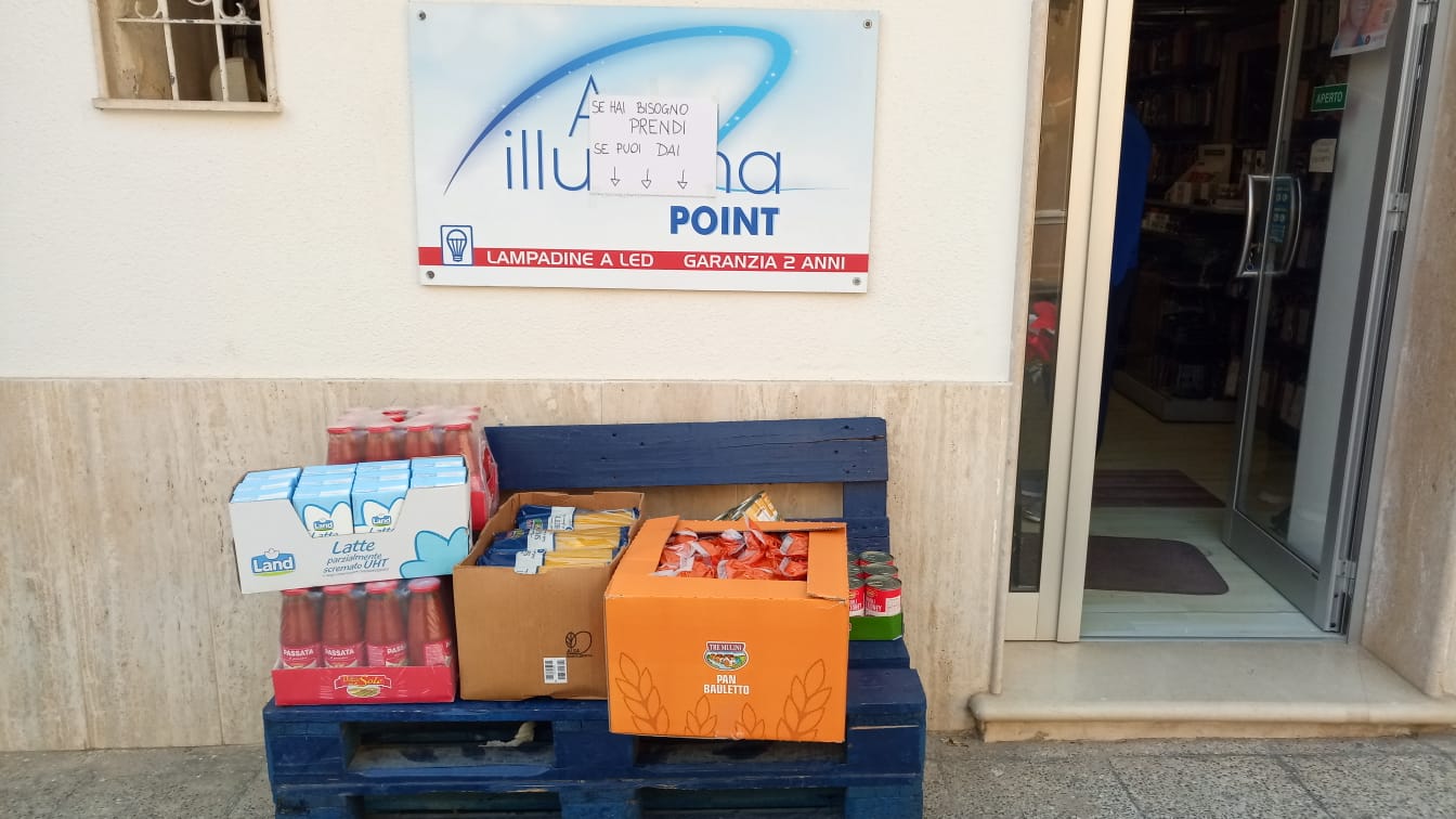 “Se hai bisogno prendi, se puoi dai”. Una piccola scritta vergata a mano sopra una panca riassume, brevemente, il significato di un’iniziativa spontanea, nata senza clamori fra la gente di un piccolo borgo marinaro come Scoglitti e che testimonia, ancora una volta, la catena di solidarietà che si è messa in moto da quando è iniziata l’emergenza Coronavirus.