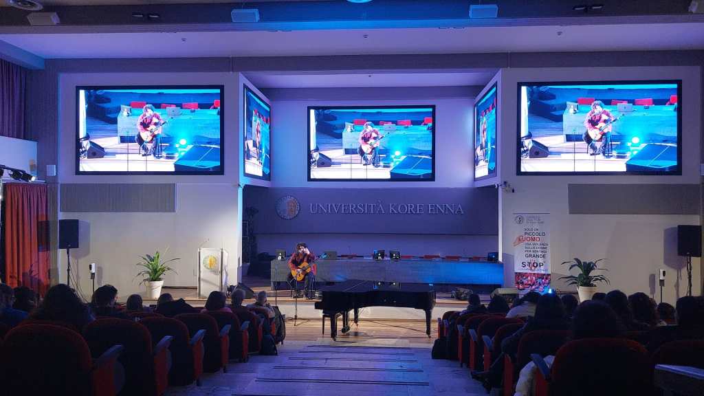 Ma è un festival capace anche di parlare ai giovani, proprio come ha fatto stamani, con un’iniziativa “fuori porta”, attraverso un partecipatissimo e interattivo incontro che si è svolto all’Università Kore di Enna e a cui hanno tra gli altri partecipato sia il direttore artistico Zagarrio che il regista Ciprì che ha fatto un’intesa conferenza. Tra gli ospiti, collegato in videoconferenza, un veterano del festival, Pippo Del Bono ma l’intero appuntamento ha permesso di far interagire più arti, dal cinema al teatro, alla musica. Un’interazione avvenuta dinanzi ad una folla di studenti che hanno visto di buon grado la proposta, emersa durante la conferenza, di mettere in rete i festival cinematografici del Sud con l’obiettivo di favorire lo scambio, la diffusione dei film, ma anche educare opportunamente il pubblico affinché si goda in sala, in un momento di piena condivisione, la pellicola e il messaggio che l’autore vuole fornire agli spettatori.