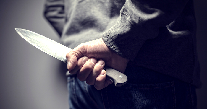 - Criminal with knife weapon hidden behind his back