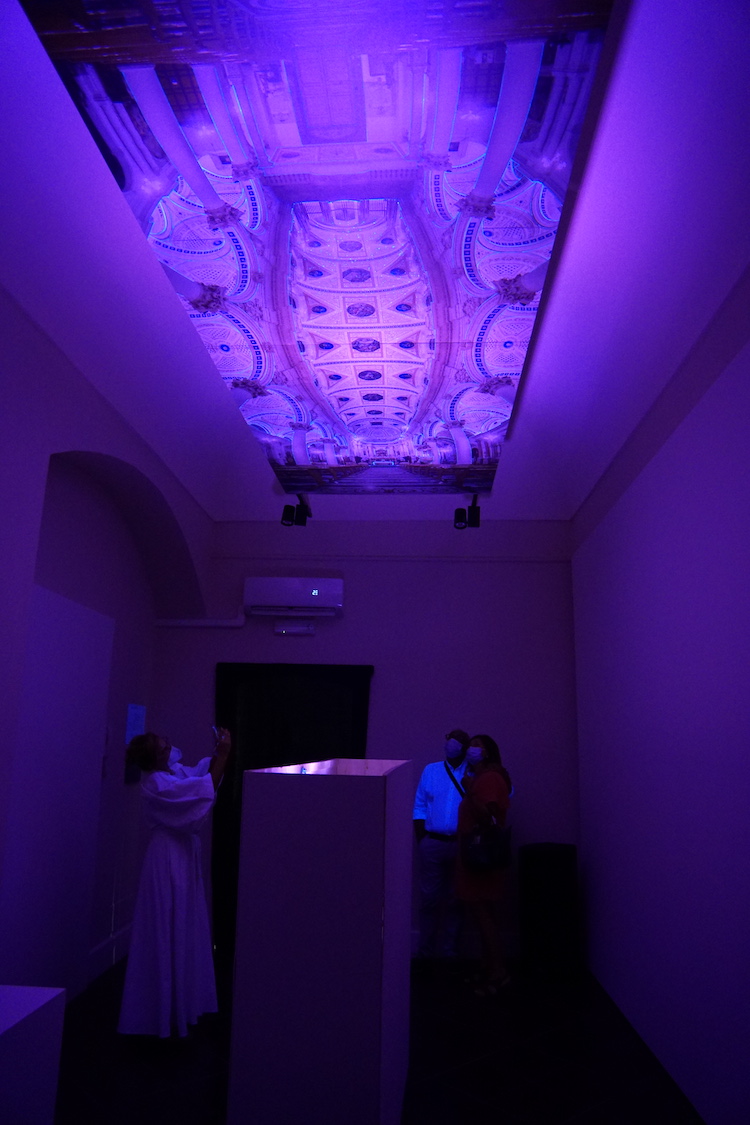 Michelangelo per esempio convertì la decorazione della Cappella Sistina in racconto interpretativo, passando dalla raffigurazione del cielo della scienza astronomica a quello del cielo della fede, dall'aspetto visibile del cielo a quello cosmologico dell'universo. Dal «cielo» ai «cieli»”. E la mostra torna su questo passaggio, proponendo una visione realistica spinta appena oltre la capacità visiva: “C'era una Volta Celeste è un'opera sviluppata sul Duomo di San Pietro, sede del culto di uno dei due santi protettori della città di Modica. La deformazione ottica sulla volta rettangolare rievoca la forma di un occhio, attraverso il quale guardare oltre il visibile ed essere allo stesso momento guardati”, conclude la Scarso.