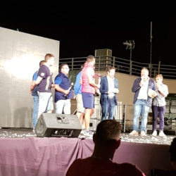 Attesissimi i fuochi d’artificio che sono iniziati a mezzanotte e mezzo. A vincere è stata la Pirotecnica Iblea di Massari, la terza ditta che si è esibita (a seguire il video). Al secondo posto (secondo in ordine di esibizione) l’azienda Castorino di Brolo e terzo posto (primo in ordine di esibizione) l’azienda Spina di Giarre. A fine serata, durante un breve momento sul palco al porto e con la conduzione dell’attore Mario Tribastone, l’assessore Ciccio Barone ha consegnato la targa del primo posto ai rappresentanti dell’azienda Pirotecnica Iblea che ha vinto.
