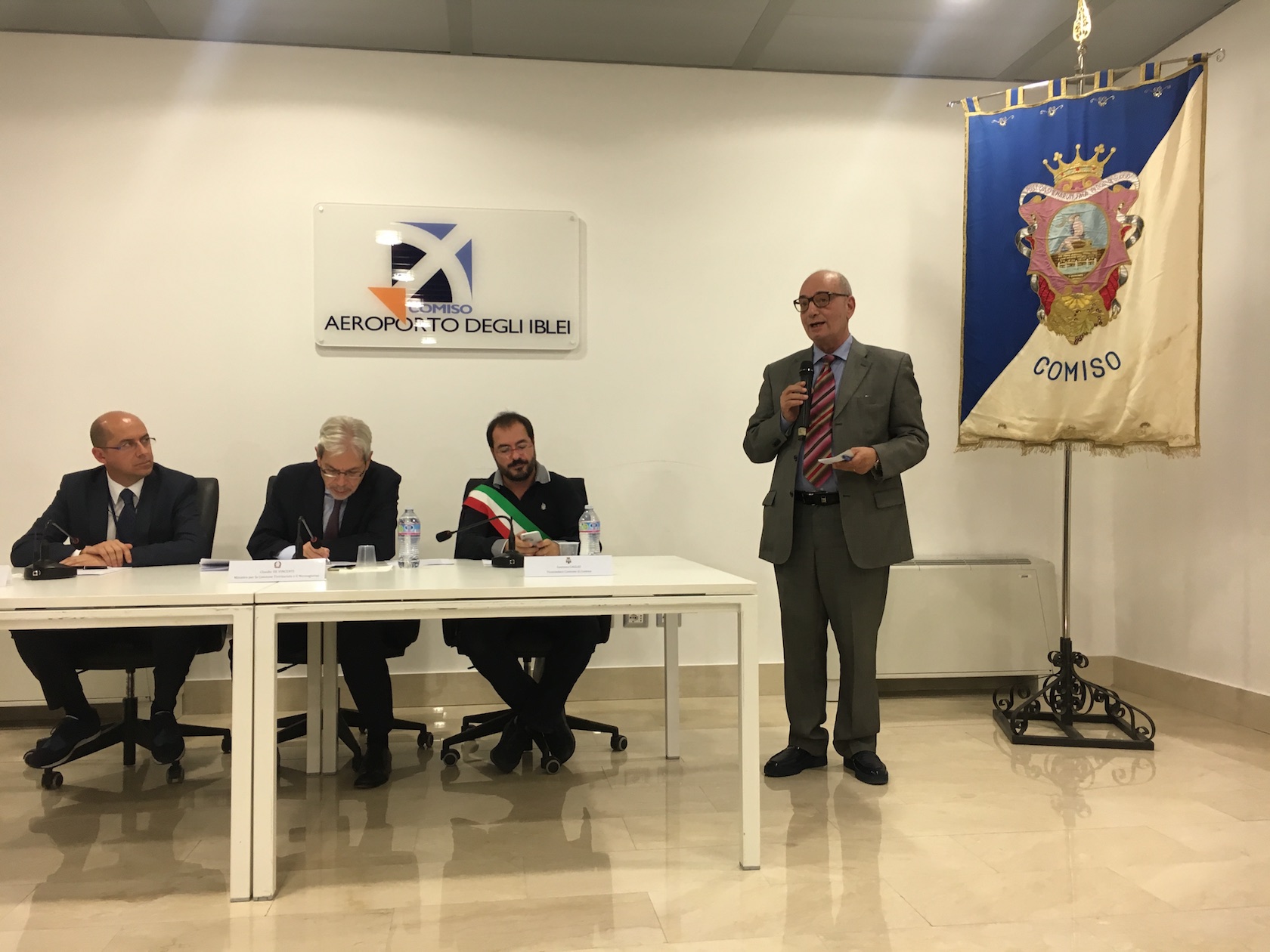 Importante e partecipato vertice ieri pomeriggio all’Aeroporto Pio La Torre di Comiso. Organizzato dall’Amministrazione Comunale, infatti, si è svolto un convegno dal tema “Cargo: prospettiva di sviluppo” cui ha preso parte il ministro per la coesione territoriale e del Mezzogiorno, Claudio De Vincenti. Presente l’on. Pippo Digiacomo, candidato all’Ars nelle elezioni del prossimo 5 novembre. In sala anche l’assessore regionale all’economia, Alessandro Baccei, il segretario regionale del Pd, Fausto Raciti, oltre che le autorità civili ed i vertici militari della provincia di Ragusa.