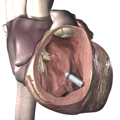Il MICRA AV è stato ancorato “dentro il cuore” tramite la via femorale a un paziente con grave infezione del vecchio pacemaker e accessi vascolari impraticabili per l’impianto di un pacemaker di vecchia generazione (a causa di trombosi della vena cava superiore). Essendo il ritmo del paziente dipendente da una stimolazione con pacemaker, solo dopo l’impianto dell’innovativo pacemaker, si è proceduto all’espianto del vecchio stimolatore infetto posto in addome. Il nuovo Pace-Maker ha un rischio infettivo quasi nullo, proprio perché, essendo senza fili, manca la struttura e il catetere su cui i batteri potrebbero attecchire.