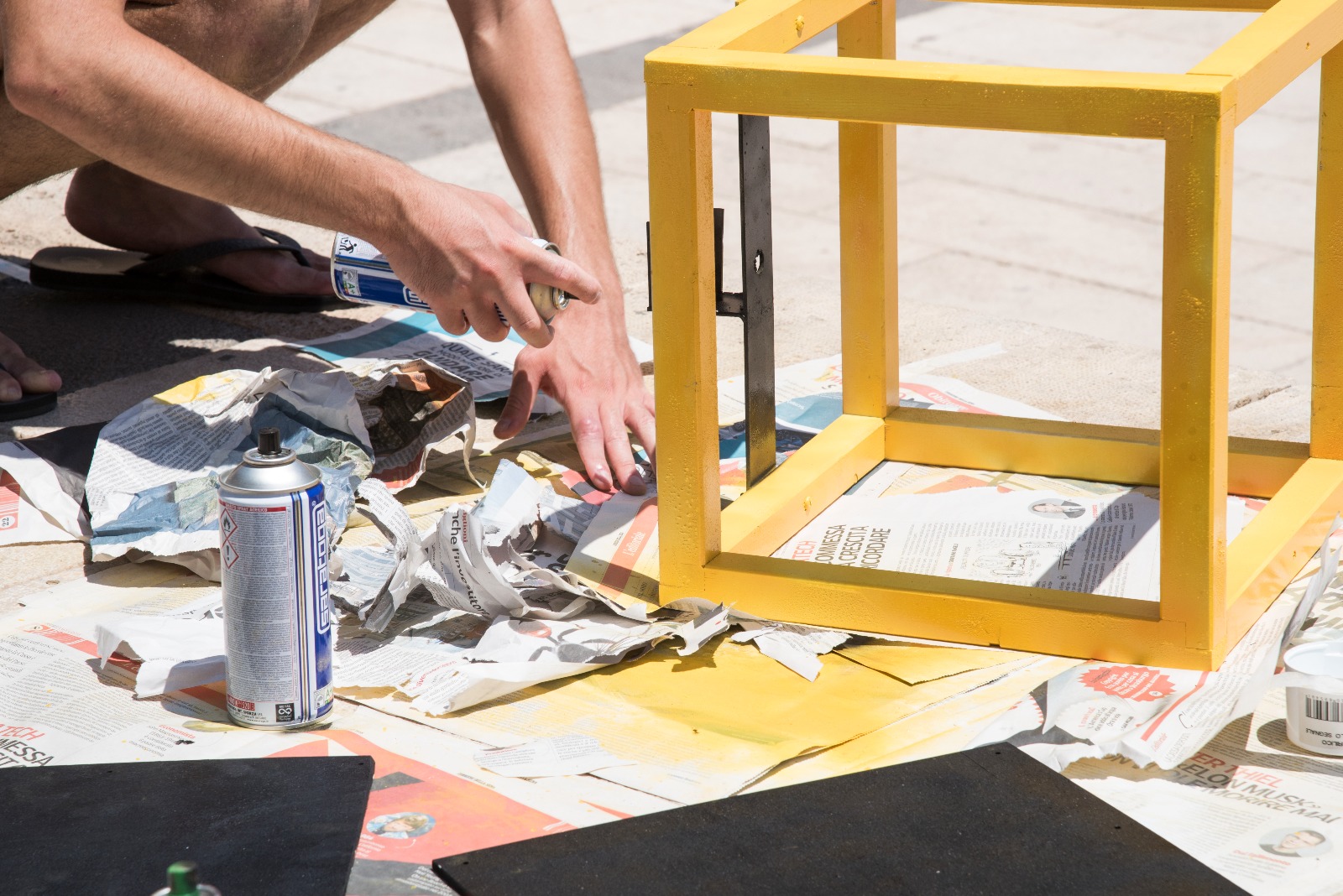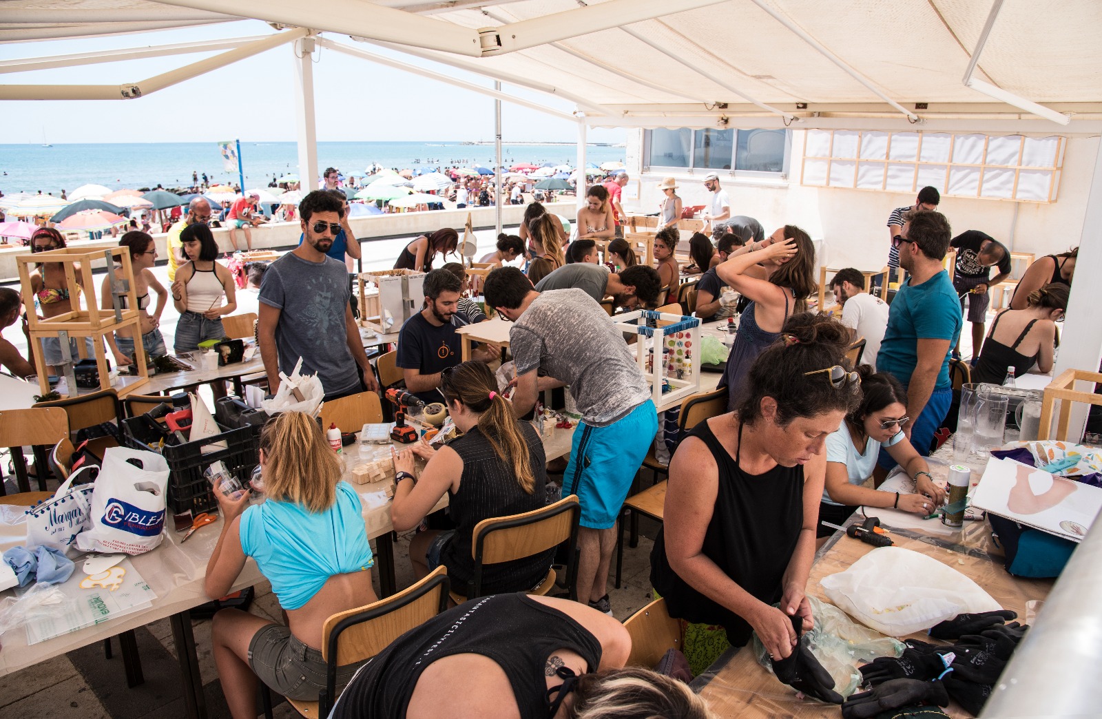 La contaminazione di arti e materiali caratterizza questa manifestazione che anno dopo anno è ormai diventata un must per tutta Marina di Ragusa. Smerigliatrici, carta gommata, avvitatori, chiodi, martelli e tanto altro già alle 10 di mattina la facevano da padrona per reinterpretare l’installazione d’arte che è stata allestita al Met già agli inizi dell’estate, con la direzione artistica di Danilo Dimartino ed Elisa Muccio, su input di Thomas Battaglia, e che ha previsto la creazione di uno schermo gigante creato da pixel contigui a cura di Pixel Shapes con l’obiettivo di ridurre al massimo al risoluzione e dunque invogliare a guardare la realtà con i proprio occhi e non tramite display o tv.