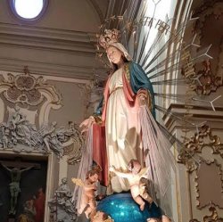 Ricorre quest’anno domenica 12 maggio la festa di Maria Santissima della Medaglia, compatrona della città di Ragusa. Qui il culto ha avuto inizio nel 1840 quando don Salvatore Ferrera, don Giacomo Gurrieri e don Mario Di Stefano, sacerdoti ragusani, riportarono negli ambienti iblei l’eco dell’apparizione di Maria Santissima della Medaglia a santa Caterina Labourè nel 1830, a Parigi, presso il convento delle suore “Figlie della Carità”.