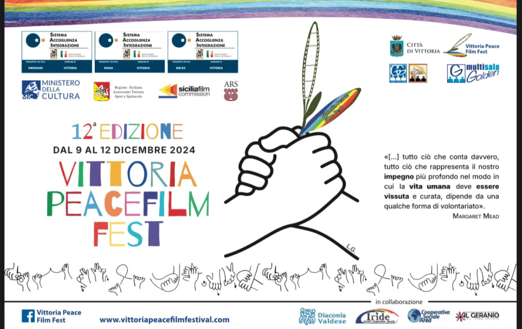 Veicolare la pace attraverso il cinema. È l’obiettivo del Vittoria Peace Film Fest, giunto alla sua dodicesima.La kermesse cinefila siciliana che celebra la pace in tempo di guerra è in programma alla Multisala Golden di Vittoria (Ragusa), da lunedì 9 a giovedì 12 dicembre 2024. La direzione artistica è firmata a sei mani: dall’esercente cinematografico Giuseppe Gambina, dallo studioso di gestione dei conflitti, processi di pace e sviluppo Luca Gambina e dal giornalista Andrea Di Falco. I tre direttori sostengono che l’edizione “darà uno spazio decisivo alle immagini. Film, documentari e cortometraggi saranno i protagonisti assoluti del festival”. Un festival che punta, come sempre, sull’importanza dell’istruzione, dell’interculturalità, della giustizia sociale, della non violenza, della solidarietà, del rispetto delle diversità, dei diritti umani, in particolare dei minori, dei migranti e degli abitanti delle periferie del mondo.