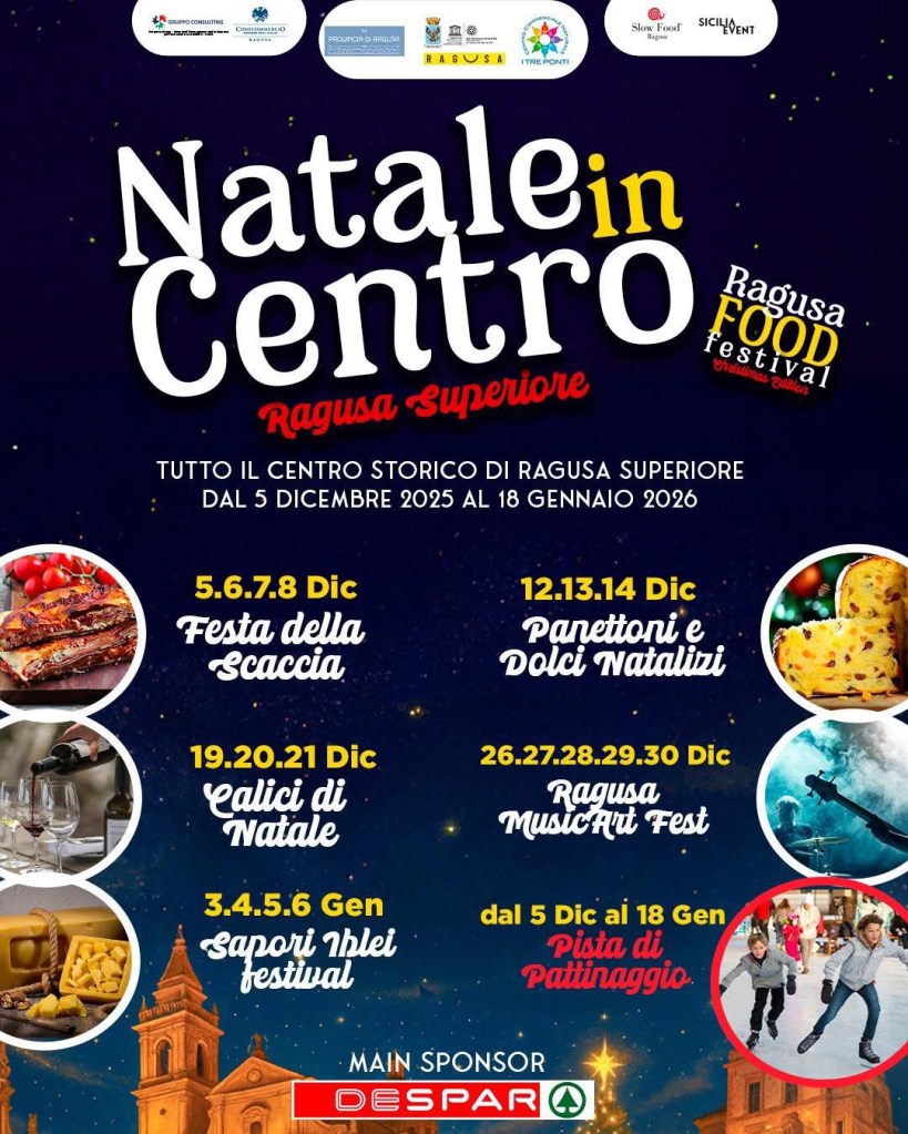 Il Natale nel centro storico superiore di Ragusa, promosso dal CCN I Tre Ponti, si avvale del contributo del Comune di Ragusa, del main sponsor Despar e della collaborazione di Gruppo Consulting, Confcommercio, Slow Food Ragusa e Sicilia Event. Tutti i dettagli sono sulle pagine social.