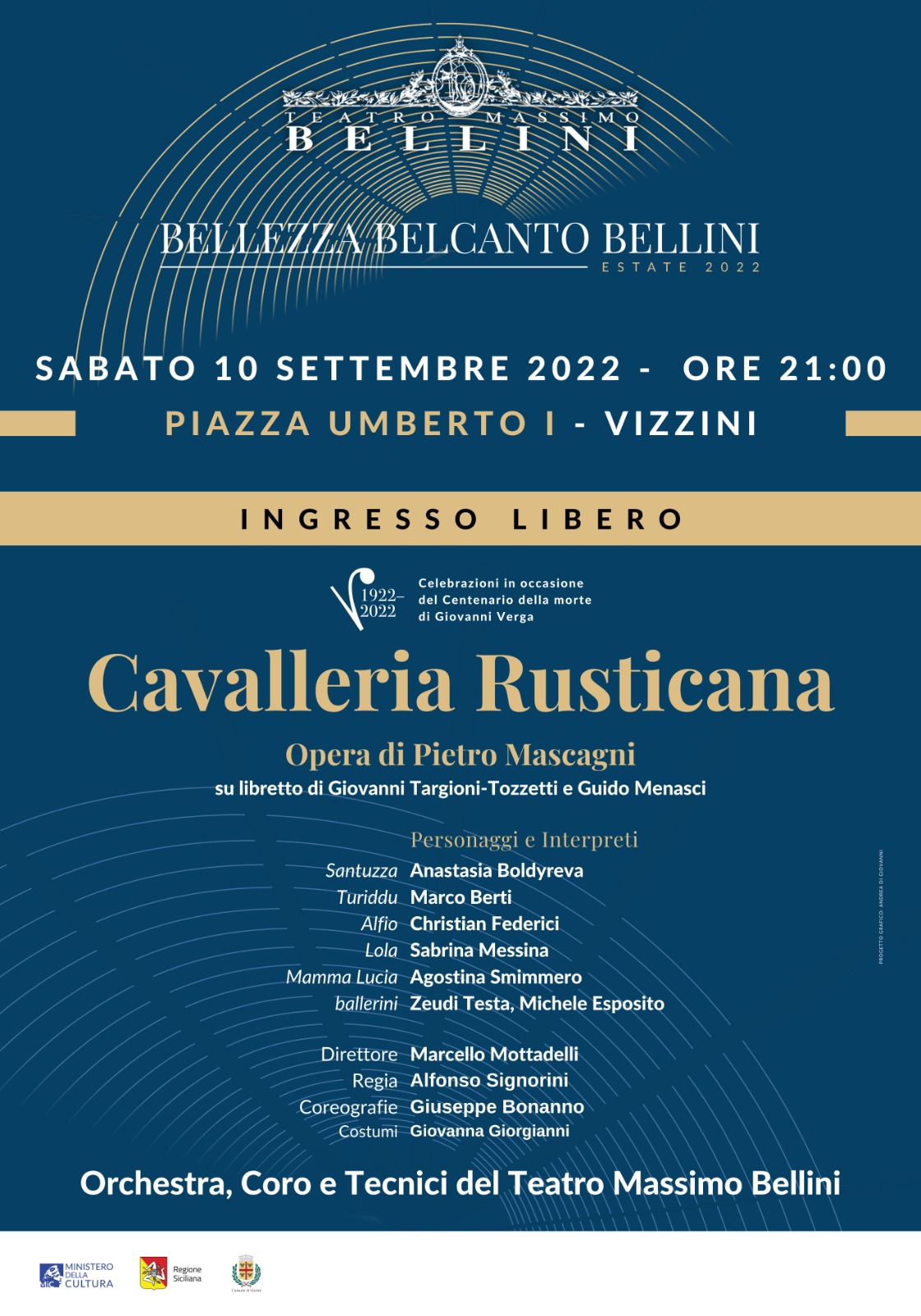 Anche con questa produzione, come spiega il sovrintendente del Teatro Bellini, Giovanni Cultrera di Montesano, “il «Bellini esce fuori dal Bellini» realizzando il decentramento delle produzioni nella Sicilia, non solo orientale, per assolvere la missione di diffusione della grande musica nel territorio alla quale il Teatro Massimo Bellini è chiamato, in quanto ente regionale. La Cavalleria Rusticana, realizzata dal Teatro Bellini nei luoghi storici verghiani, é prodotta grazie alla sinergia tra la Regione Siciliana, l'Assessorato del Turismo, Sport e Spettacolo, l’Assessorato dei Beni culturali e Identità siciliane e il Comune di Vizzini. Una prestigiosa operazione artistica e culturale tout court. Mai come in questa occasione, infatti, letteratura e musica s'intersecano per celebrare, attraverso il genio di Mascagni, il centenario di Verga, padre del Verismo e voce nobile della narrativa universale”.