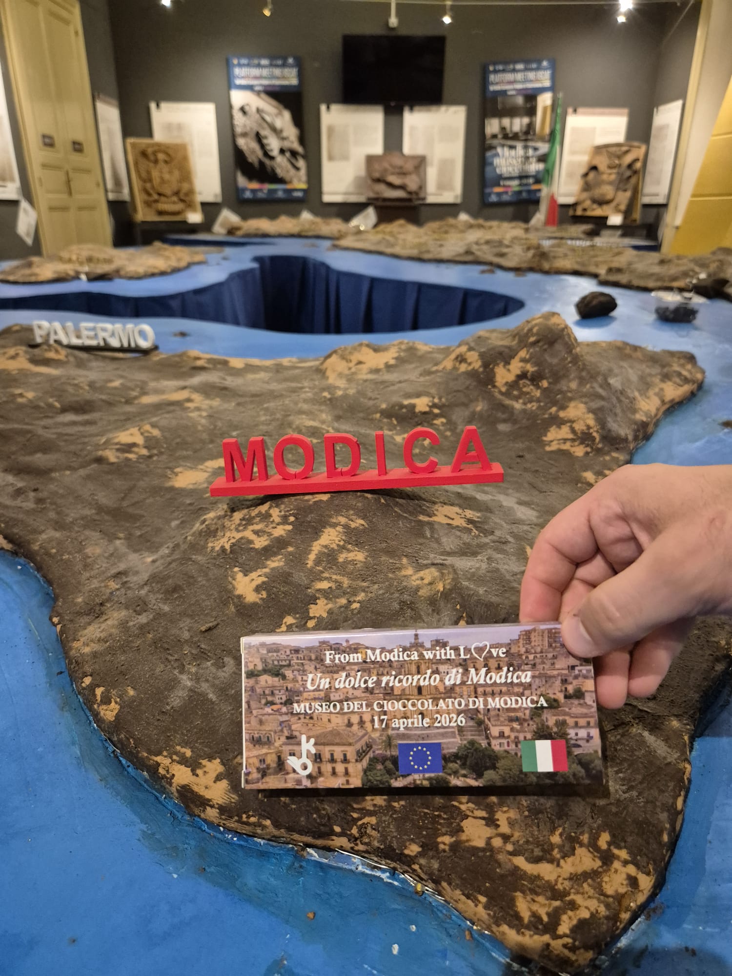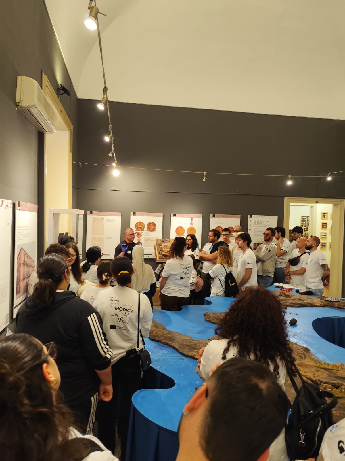 Arrivati alla Chiesa di San Pietro, i partecipanti hanno preso parte a un ulteriore momento di approfondimento, per poi proseguire verso il Museo del Cioccolato di Modica, tappa conclusiva della giornata. Qui si è svolta una dimostrazione pratica della lavorazione del tradizionale cioccolato modicano su piastra calda, accompagnata dalla spiegazione del maestro Gianni Frasca, seguita da una degustazione di diverse varianti del prodotto.