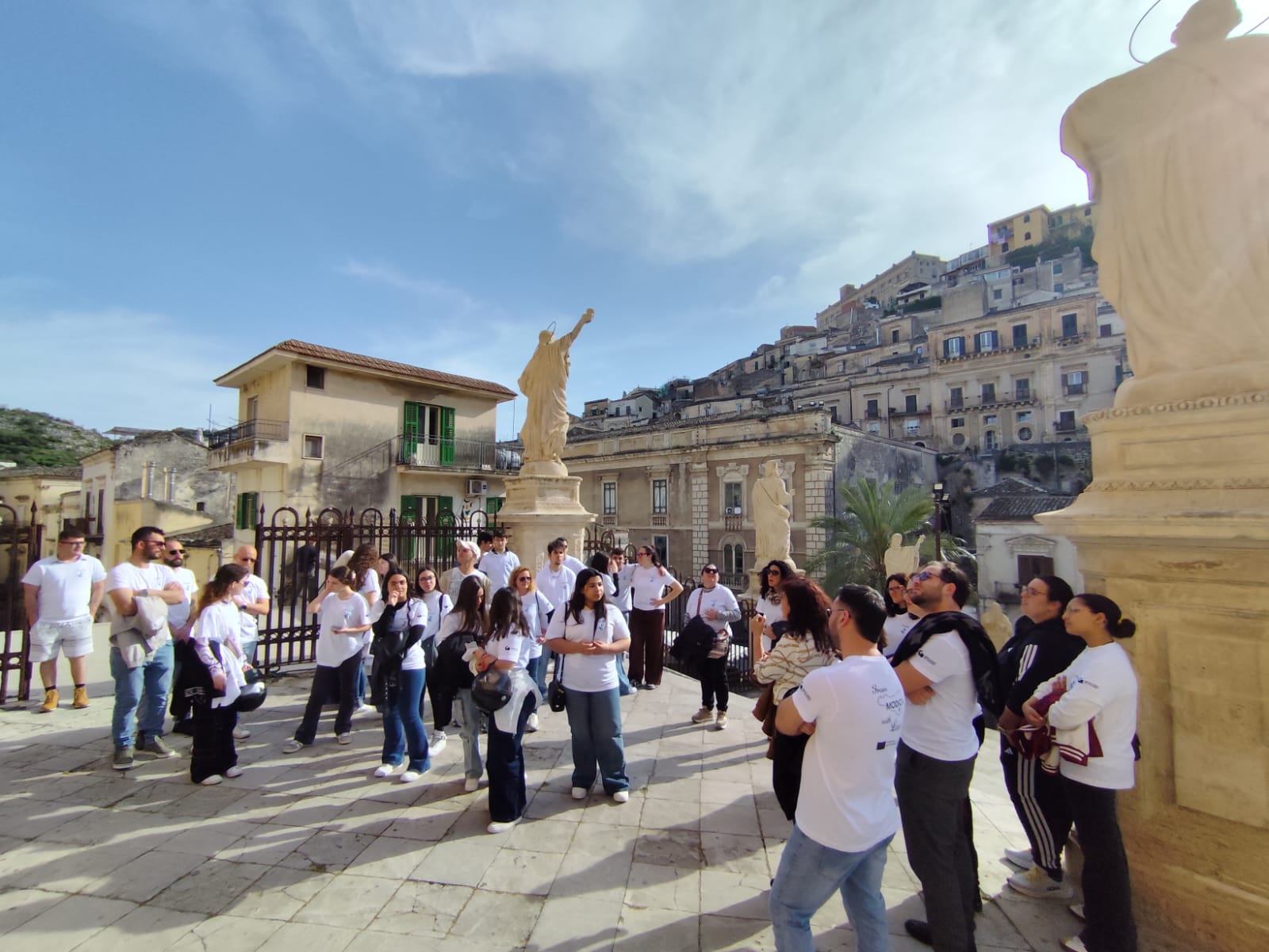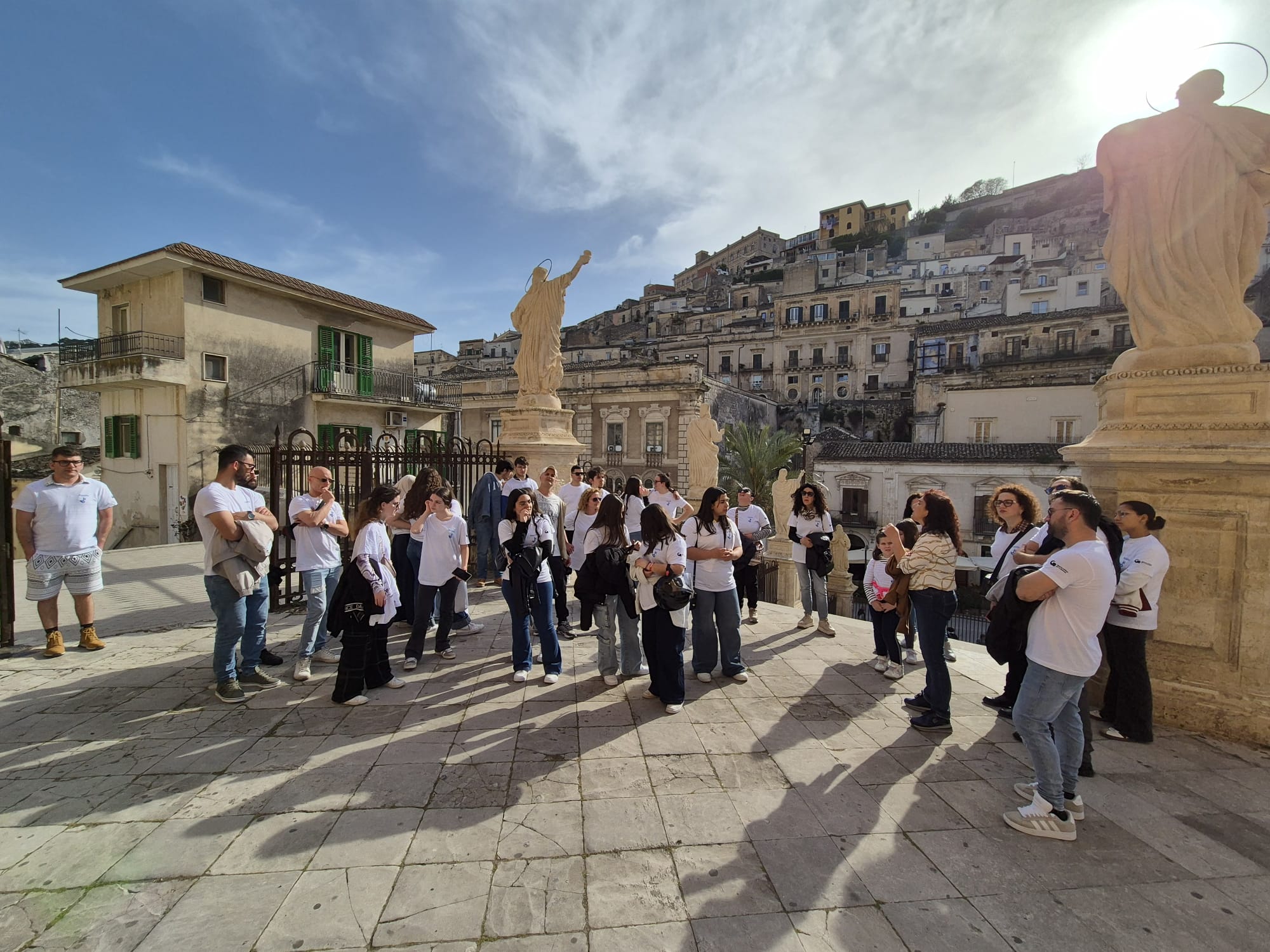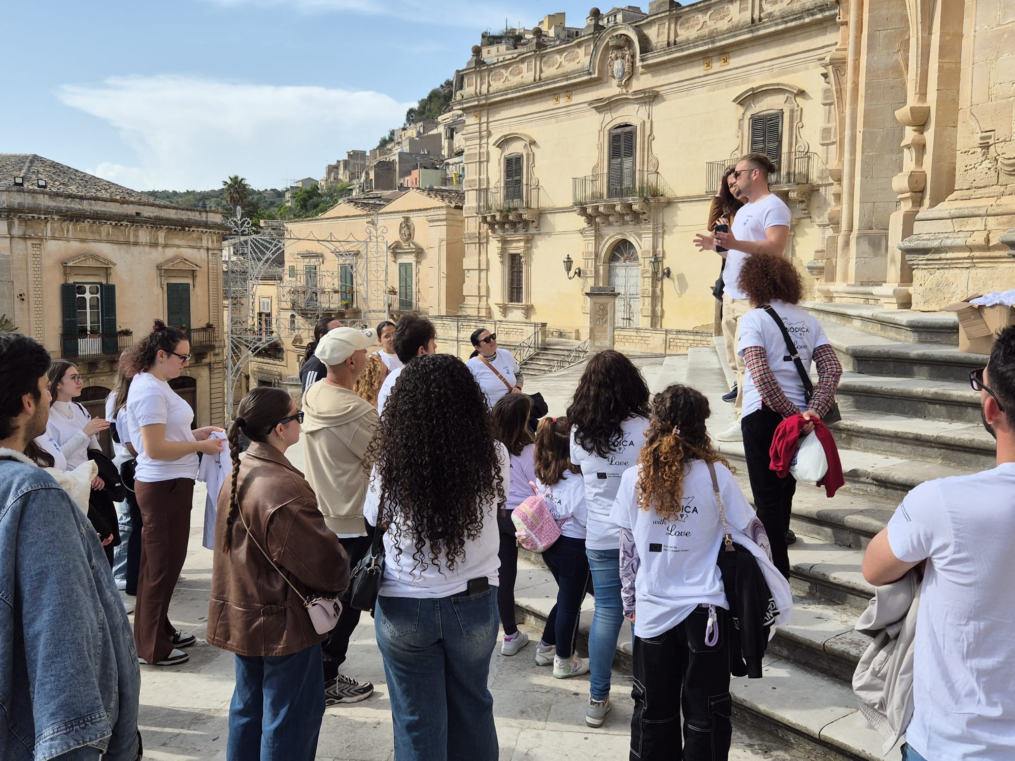 L’iniziativa, finanziata dalla Commissione Europea e dall’Agenzia Italiana per la Gioventù, ha preso il via con la visita al Duomo di San Giorgio, accompagnata da una spiegazione approfondita sulla storia e sul valore artistico del monumento, tra i più rappresentativi del barocco siciliano.