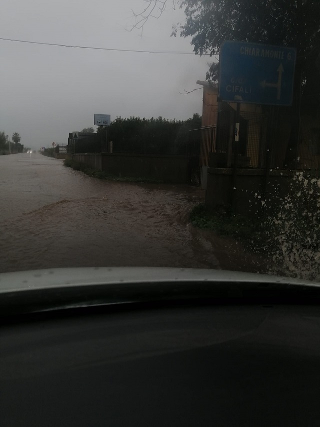Allagamenti anche sulla Comiso-Chiaramonte, dove si segnalano gli straripamenti dei terreni limitrofi.