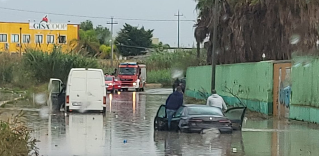 Anche nella zona di Gela si sono registrate precipitazioni notevoli, con analoghe condizioni di strade allagate e rallentamenti al traffico. La combinazione tra il maltempo, la morfologia del suolo e il sistema di deflusso ha portato alla formazione di veri e propri “bacini temporanei” d’acqua sulla carreggiata.