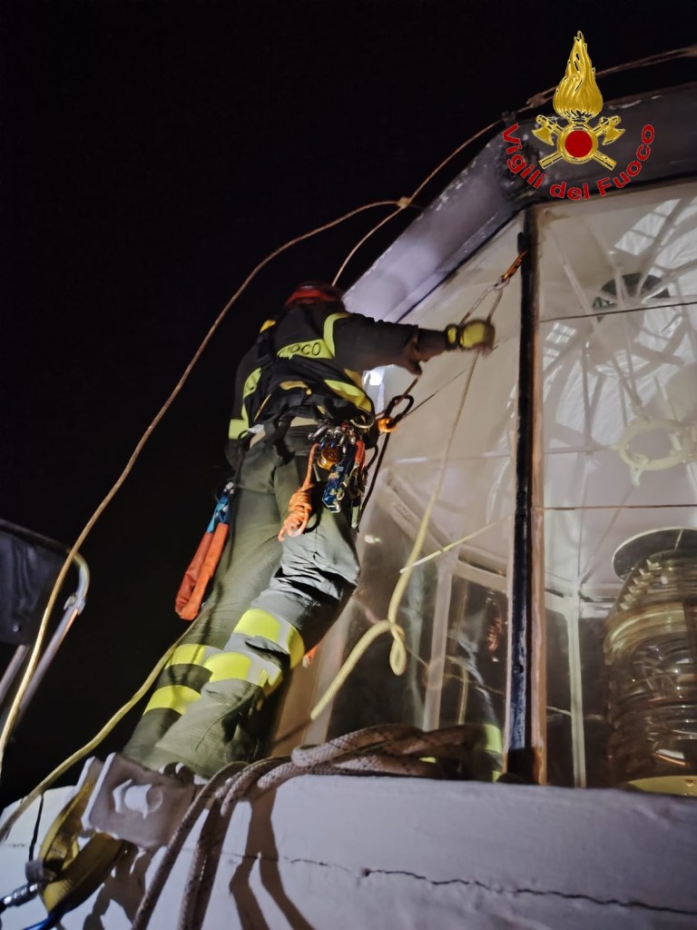 Uno dei pannelli in piombo che rivestono la sommità del faro presentava segni di possibile instabilità, tali da far temere il distacco e la caduta. Sul posto è arrivata una squadra specializzata dei Vigili del Fuoco, dotata di attrezzature e tecniche alpinistiche. Dopo aver raggiunto l’apice della struttura salendo dalla scala interna, i pompieri si sono imbracati in sicurezza e hanno effettuato un’attenta verifica strutturale della copertura, riuscendo a scongiurare ogni rischio.