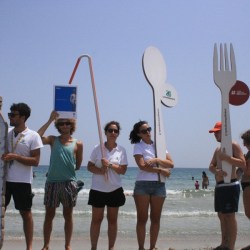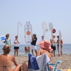 Un enorme piatto, posate, una bottiglia e una mega cannuccia. Tra lo stupore dei bagnanti sono comparsi usa e getta giganti: a portarli in spiaggia i volontari di Legambiente che, questa mattina, hanno organizzato un “flash mob” sulla spiaggia *Spinazza* nel Golfo di Noto in occasione della tappa a Marzamemi della *Goletta Verde*.