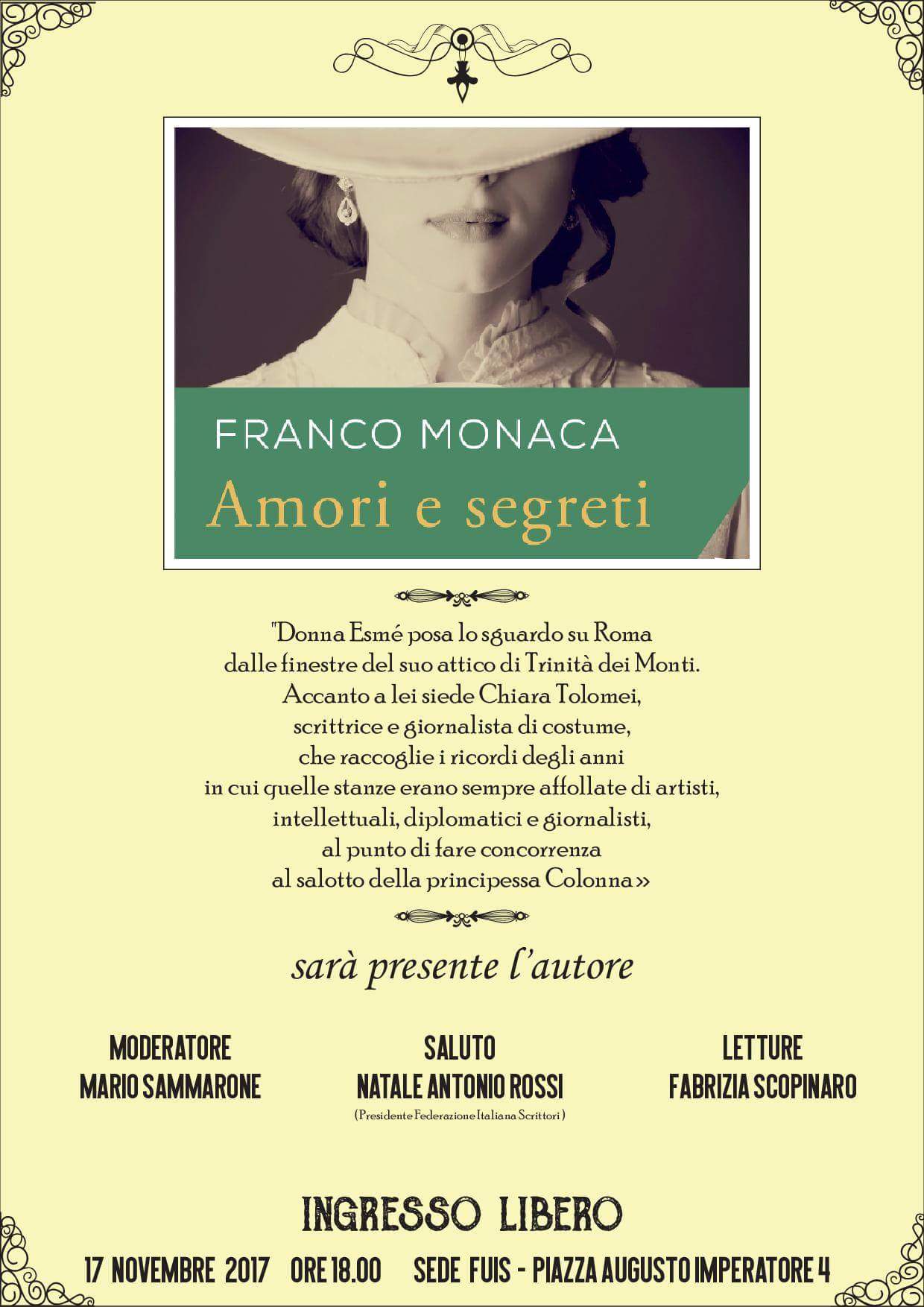 “Amori e segreti di donna Esmé”, si presenta a Roma il nuovo romanzo di Franco Monaca