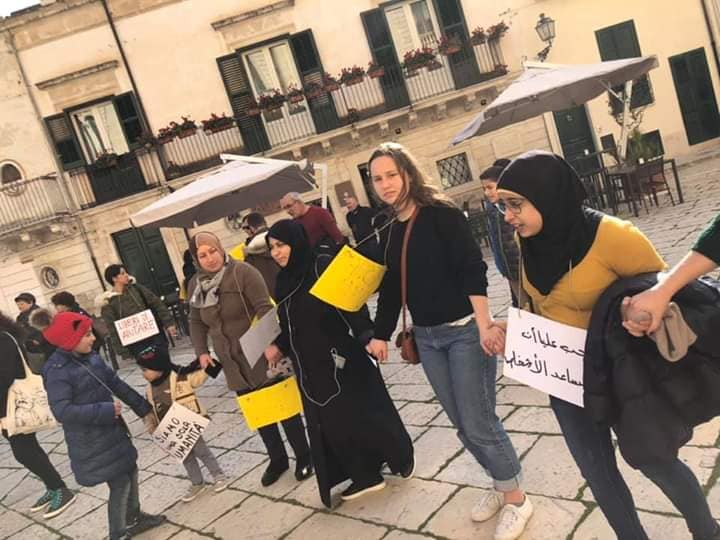 Alla manifestazione spontanea, che si è sviluppata in contemporanea in molte piazze italiane, sono intervenuti anche alcuni cittadini stranieri che hanno espresso la propria posizione utilizzando cartelli scritti in arabo. A Scicli la manifestazione è stata organizzata da Mh casa delle culture e Legambiente Scicli Kiafura