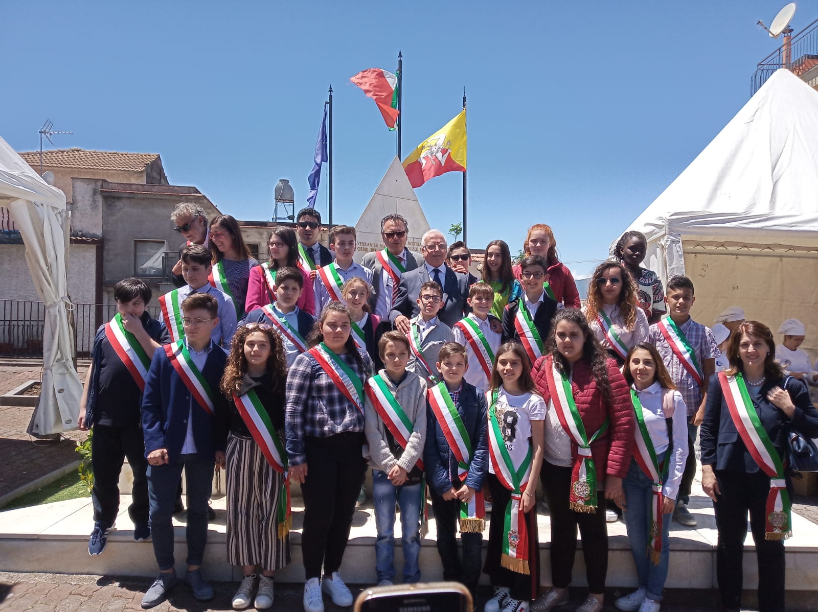 Sul palco si sono alternati alternati più di 60 ragazzi, entusiasti dell’incarico che oltre a porgere i ringraziamenti e i saluti delle Amministrazioni rappresentate hanno condiviso idee e propositi per migliorare la vita di tutti i giorni affrontando temi importanti sulla difesa della legalità, sul valore dell’accoglienza, sulla cultura, sulla difesa dell’ambiente e sull’attualità dei valori costituzionali.