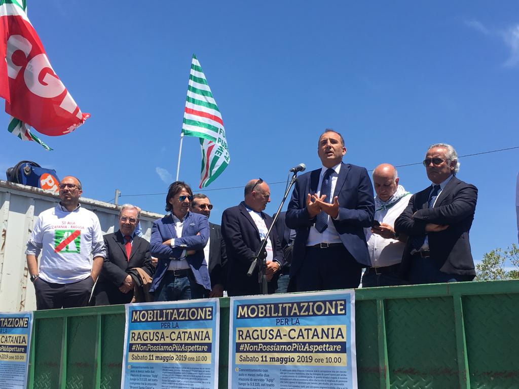 “Non abbiamo manifestato semplicemente per chiedere l’attenzione del Governo nazionale, non è quello che chiediamo né ciò che ci serve – ha detto Dipasquale dal palco allestito alla stazione di servizio Lukoil di contrada Coffa – chiediamo che non si perda il lavoro fatto da tutti noi, politici, associazioni di categoria, sindacati, perché insieme, nel corso degli anni, siamo riusciti a ‘inventarci’ la soluzione del progetto di finanza proprio per non elemosinare a Roma la totalità dei fondi necessari per la realizzazione dell’opera, nel frattempo è stata espletata una gara, è stato approvato un progetto, si sono reperite le somme e si sono ottenute tutte le autorizzazioni necessarie ad ogni livello. Manca solo l’ultimo passaggio, l’approvazione definitiva al Comitato interministeriale per la Programmazione economica. Si può consentire che tutto questo lavoro, durato più di dieci anni, si perda per ragioni che questo Governo non riesce neanche a spiegare? Ecco – ha concluso Dipasquale – non è possibile perdere tutto e tornare indietro di oltre dieci anni, non lo consentiremo”.