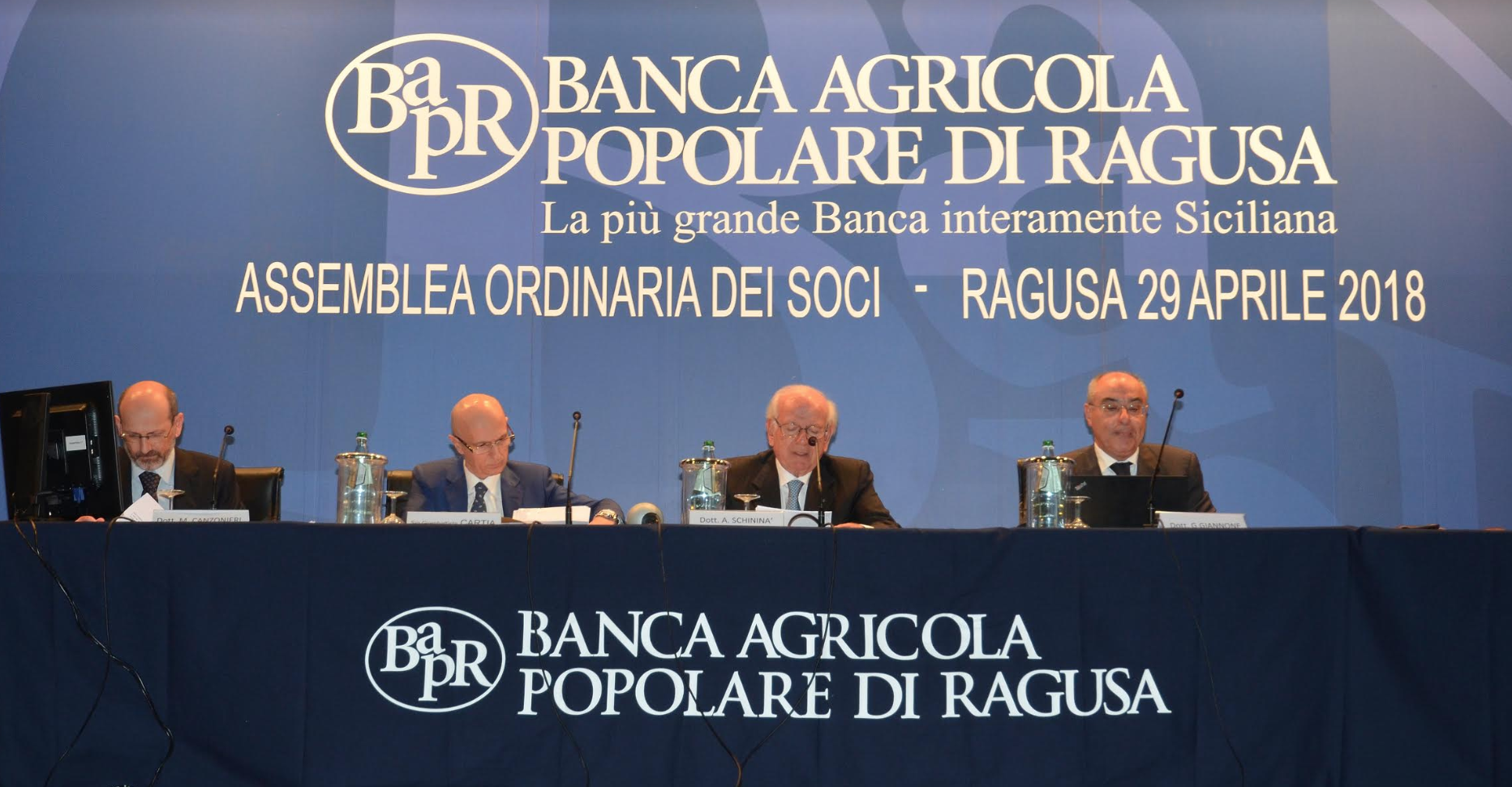 Domenica 29 aprile l’Assemblea Ordinaria dei Soci della Banca Agricola Popolare di Ragusa ha approvato, a larghissima maggioranza, il bilancio al 31 dicembre 2017. Anche quest’anno i lavori assembleari hanno trovato ospitalità presso il Cine – Teatro Duemila di Ragusa. Nutrita la presenza dei soci e dei dipendenti; numerosi gli interventi, in un clima di confronto costruttivo.