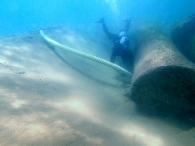 Contrariamente a quanto si potrebbe pensare, la difficoltà maggiore nello studiare questo relitto è data dalla bassissima profondità a cui giace. «Il fondale sabbioso – spiega Massimo Capulli – si muove facilmente con il moto ondoso e soprattutto ancora più facilmente frana durante le fasi di scavo. Per ovviare parzialmente a questa difficoltà, è necessario aprire un’ampia trincea e, procedendo per piani inclinati, rimuovere il sedimento con una sorbona ad acqua».
