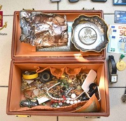 I tre sono stati sottoposti ad immediata perquisizione personale allargata al mezzo, che ha permesso di rinvenire una borsa in pelle stracolma di monili di vario genere, orologi da polso, spille, monete antiche, collane di perle, svariati oggetti in argento.