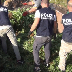 Dopo aver effettuato la campionatura in presenza dell’arrestato, gli uomini della Polizia di Stato hanno dato avvio alle fasi di estirpazione per il successivo sequestro. Numerosi poliziotti liberi dal servizio sono stati richiamati e la mattina del primo maggio, sin dalle prime luci dell’alba, hanno dato avvio alle operazioni di pesatura e sequestro. In ausilio è stato richiesto l’impiego di idonei camion per la raccolta di tutta la marijuana ed il trasporto.