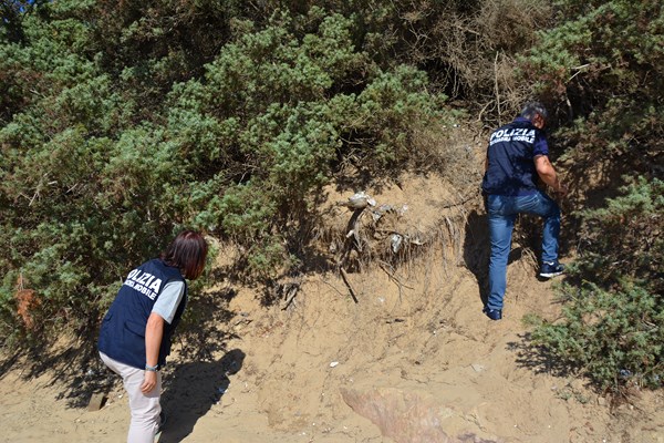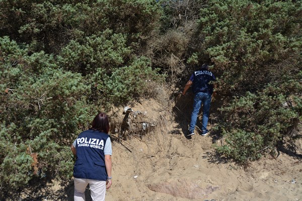 Raccolta immediatamente la richiesta d’aiuto, gli uomini della Sezione Narcotici della Squadra Mobile, hanno indossato i costumi da bagno e si sono recati in spiaggia per monitorare quanto segnalato. Dopo qualche giorno di attività, veniva notato un gruppo di giovani tunisini che, effettivamente, si aggirava con fare sospetto sia in spiaggia che presso lo scheletro di una casa abbandonata di Punta Braccetto, segnalato più volte come rifugio di alcuni senza fissa dimora o luogo dove veniva suddivisa in porzioni la sostanza stupefacente prima della vendita al dettaglio.