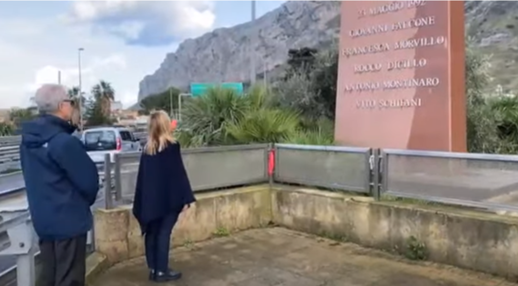 Prima di arrivare in procura, la presidente del Consiglio Giorgia Meloni e il sottosegretario alla Presidenza Alfredo Mantovano hanno osservato un minuto di raccoglimento davanti alla stele di Capaci che ricorda le vittime della strage nella quale persero la vita il giudice Giovanni Falcone, la moglie Francesca Morvillo e gli agenti della scorta Rocco Dicillo, Antonio Montinaro e Vito Schifani.