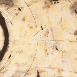Nella seconda metà degli anni novanta compaiono la ciotola, l’imbuto, la calle, forme che accolgono, contengono, ricevono. A far da contrappunto alle omogenee stesure grafiche e cromatiche intervengono il rosso e il blu, rispettivamente a voler indicare il colore del sangue e del cielo.