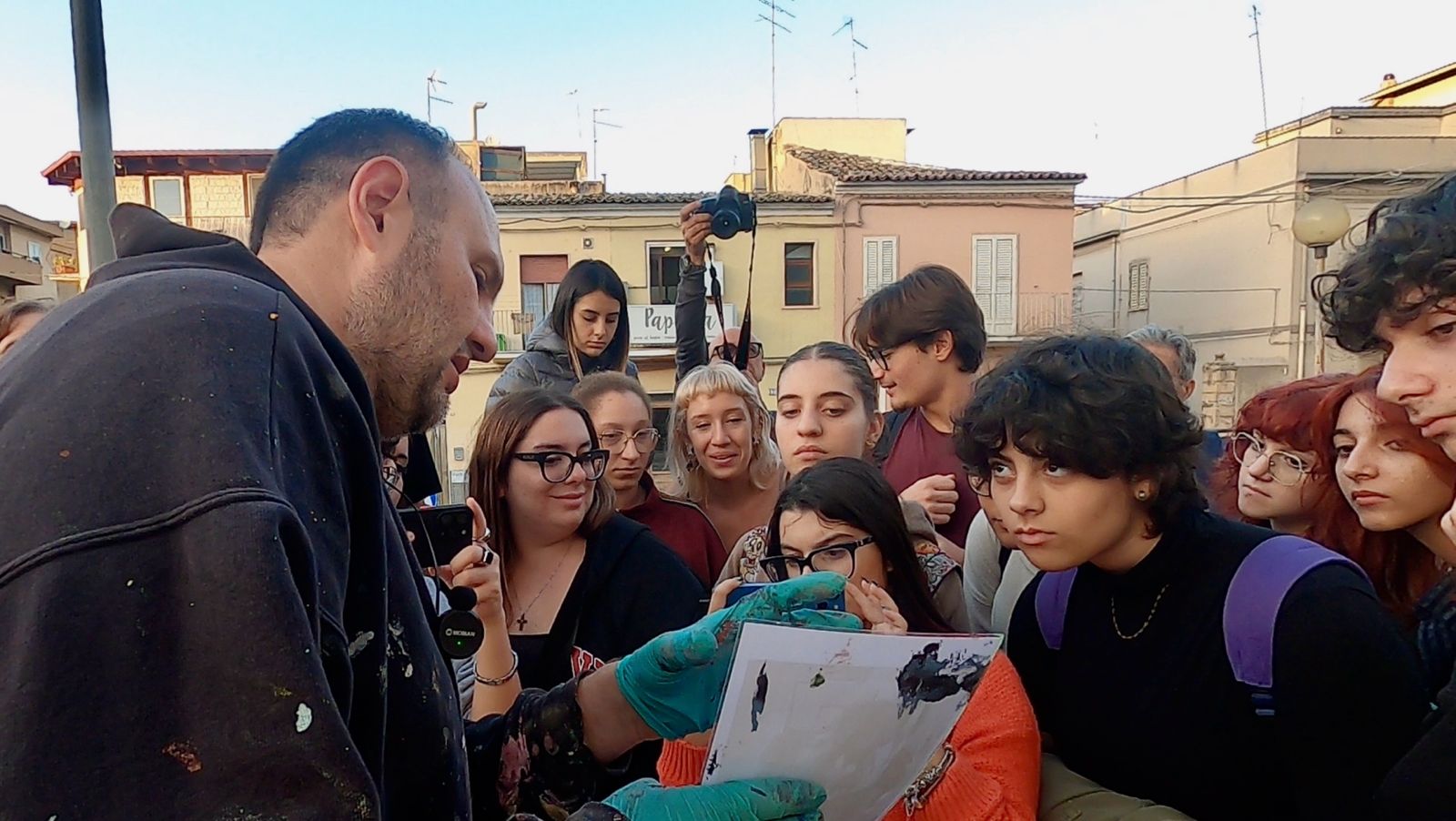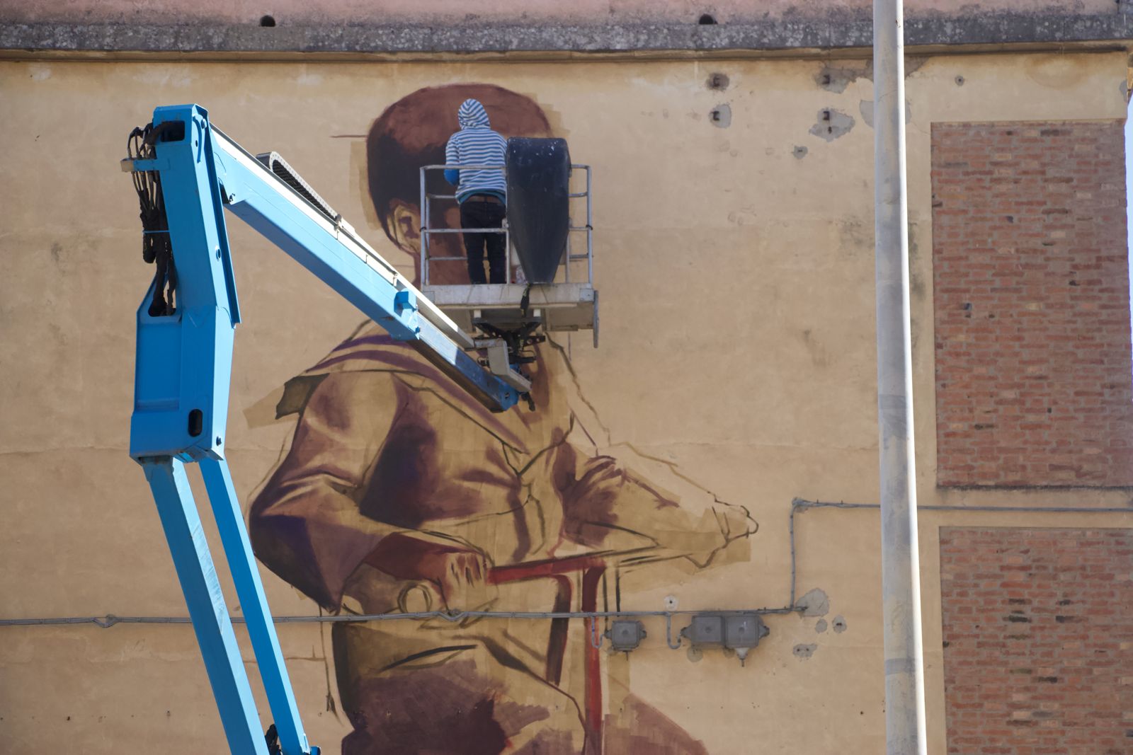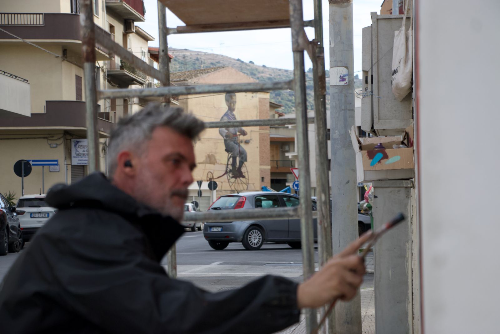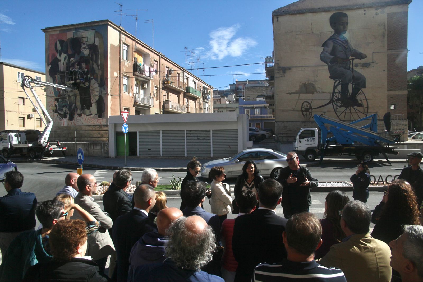 Case Ma’Claim e Marat Morik hanno terminato gli ultimi dettagli del cantiere dopo la presentazione dell’evento (l’11 novembre) alla cittadinanza insieme agli altri protagonisti: gli studenti del Liceo artistico Carducci di Comiso, parte attiva del processo di creazione con un filo diretto intrecciato con gli autori e un’attività di documentazione guidata da Vincenzo Cascone, impegnato proprio in questi giorni in un ciclo di lezioni sul muralismo rivolto agli stessi studenti e inerente a “Comiso Arte Pubblica”. Accanto a loro, la presidente dell’Avis cittadina, Raffaella Vacante, che ha ricordato l’input dell’operazione: «un dono dell’Associazione, di tutti i donatori, alla città. Ci piace evidenziare, attraverso l’immagine del bambino in bici, Carmelo Cabibbo (1896), la bellezza della vita, l’immortalità del genere umano attraverso lo sguardo di un bimbo. La speranza di un futuro migliore».