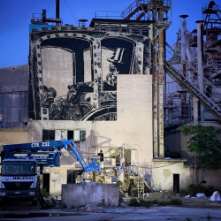 E’ una delle opere della nuova ed ultima edizione di Festiwall Ragusa su cui sta lavorando l’artista polacco M-City, noto per il suo stile d’impatto, caratterizzato dall’uso degli stencil e da un realismo post-capitalistico dove l’ingranaggio, la macchina, sovrasta l’individuo per assecondare il ciclo di produzione e consumo.