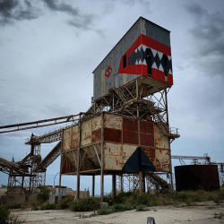 Attenzione, attenzione. Uno squalo di grosse dimensioni e soprattutto dai denti giganti, si aggira in città, a Ragusa. Anzi alla zona industriale. E’ uno squalo insolito, un parallelepipedo di grosse dimensioni. E’ una delle ex torrette dell’agglomerato dell’industria Ancione, dove per decenni si è lavorato il bitume di Ragusa, estratto dalle cave, fino a qualche anno, quando è cessata per motivi economici la produzione.