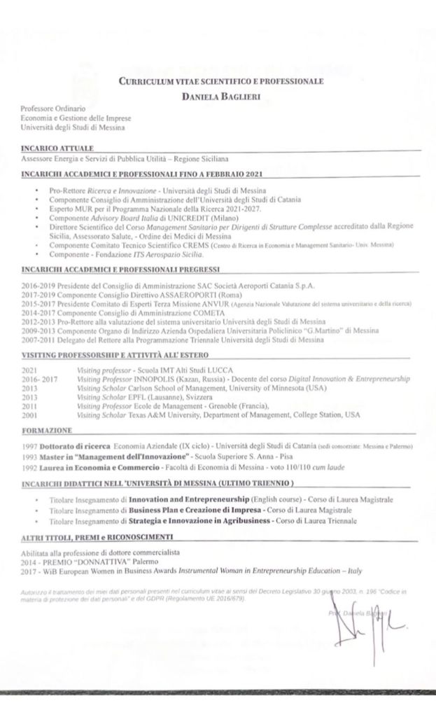 Lo faccio perché mi sembra giusto far conoscere i miei studi, i miei percorsi lavorativi, la mia professione. Una prassi inusuale nel mondo della politica, ma che spero nel tempo diventi la normalità”. Afferma l’assessore Daniela Baglieri nei suoi social.