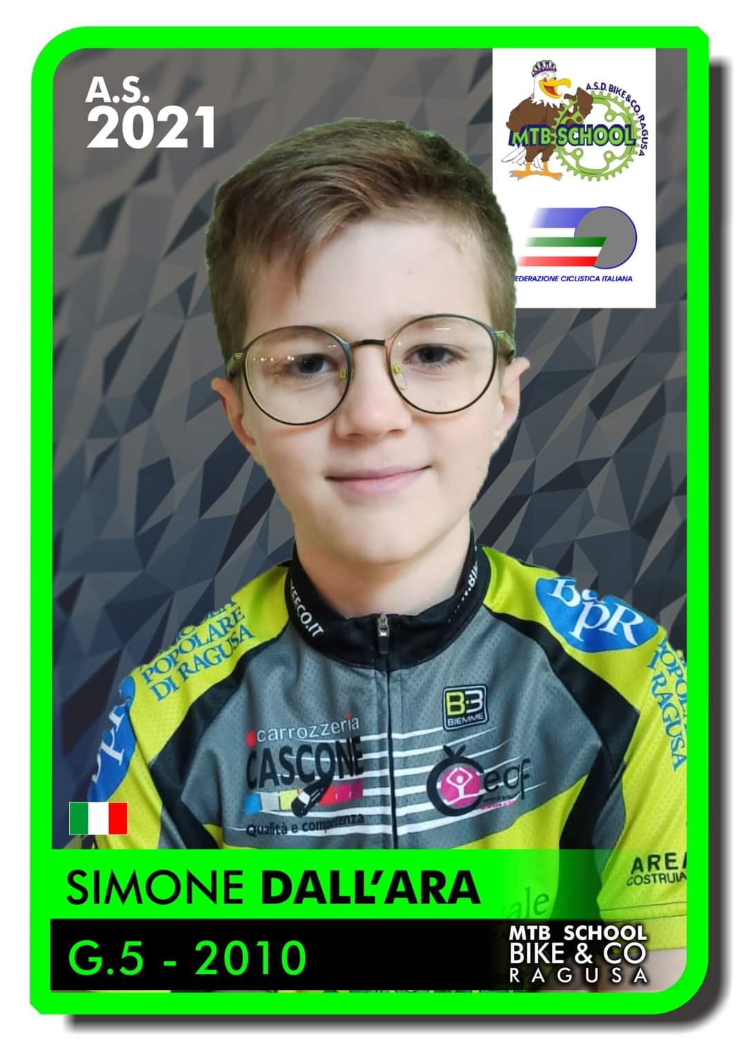 Tra le giovani leve, da segnalare i passi in avanti compiuti da Nanni La Porta, anno 2010, categoria G5, e da Simone Dall’Ara, stesso anno di nascita e identica categoria. “Undici anni e già giovanissimi atleti in gamba i nostri Nanni e Simone – spiegano i direttori sportivi della squadra ragusana – entrambi sono cresciuti nel contesto dell’Mtb School Bike & Co. Ragusa e si sono subito messi in evidenza per la loro voglia di fare e, soprattutto, di andare avanti.