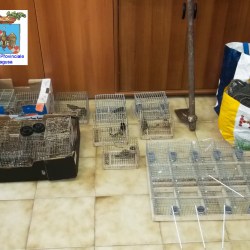 Sequestrata l’attrezzatura utilizzata, tra cui 21 gabbiette in metallo, cassette di legno e rete metallica con 10 alloggi per trasporto volatili, funi, reti, richiami elettroacustici nonché gli uccelli vivi già catturati rinvenuti all’interno di un casolare nelle vicinanze. Gli uccelli che erano legati alle canne e quelli già catturati sono stati successivamente liberati.