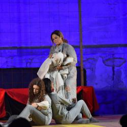 Poi la performance teatrale “La scena ritrovata. Le origini dell’Inda” a cura dell’Accademia dell’Arte del Dramma Antico che ieri sera ha concluso il festival, tra letture di documenti e stralci di opere, ma soprattutto la tragedia Medea andata in scena sabato sera nel sublime contesto dell’ex Distretto di Ibla. L’impeccabile regia di Walter Manfrè e l’intensità degli attori in scena hanno regalato un momento di toccante introspezione: il palco crudo ha accolto nella freddezza di una cella carceraria la vita che continua a esserci pur senza anima: vita che dà e poi toglie la vita stessa, perché Medea è oggi e sarà domani.