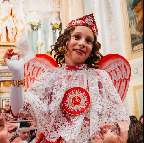I cambiamenti riguardano il percorso ma anche gli attesi momenti della “paci”, cioè l’incontro festoso dei due simulacri, trainati a braccia, che vengono lanciati uno contro l’altro per tre volte e poi issati in alto verso il Cielo. Prima della “paci” i due “angioletti”, vale a dire i due bambini che sono vestiti da angeli e che siedono ai piedi dei due simulacri, intonano il canto del “Regina Coeli”. Qust’anno i due bambini sono Filippo Battaglia e Giovanni Parrino.